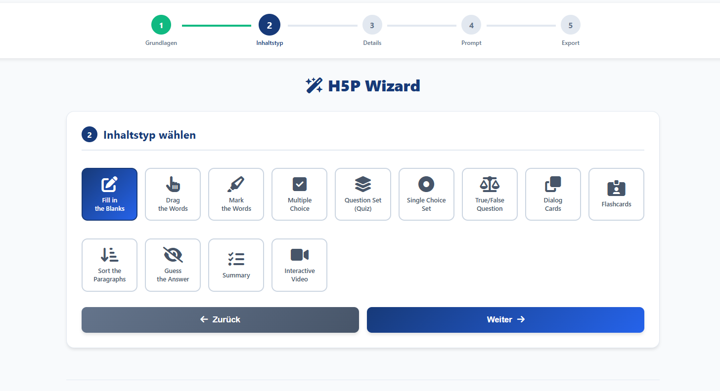 Nutze KI-Modelle um vollständige H5P-Dateien zu generieren, die du in deinem LMS nutzen kannst.