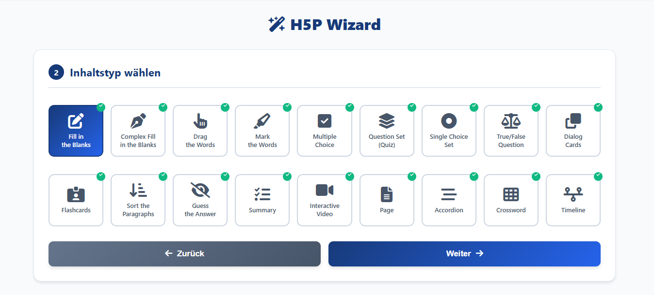 Update Februar 2026: Eweiterung auf 18 Inhaltstypen ( Complex [Advanced] Fill in the gaps, Accordion, Crossword, Timeline und Page hinzugefügt). Deutlich komfortablerer Workflow durch automatischen Bibliotheksimport. Prompts weiter opimiert